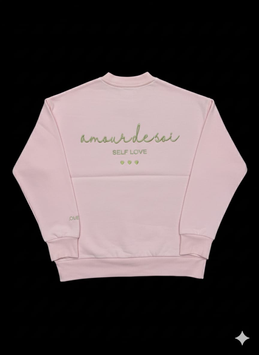Celebrate the power of self love with the “Amour De Soi” Crewneck Sweatshirt in a soft, dreamy pink. Featuring elegant green embroidery that reads “amour de soi – self love”, this sweatshirt is a gentle reminder to love yourself first.