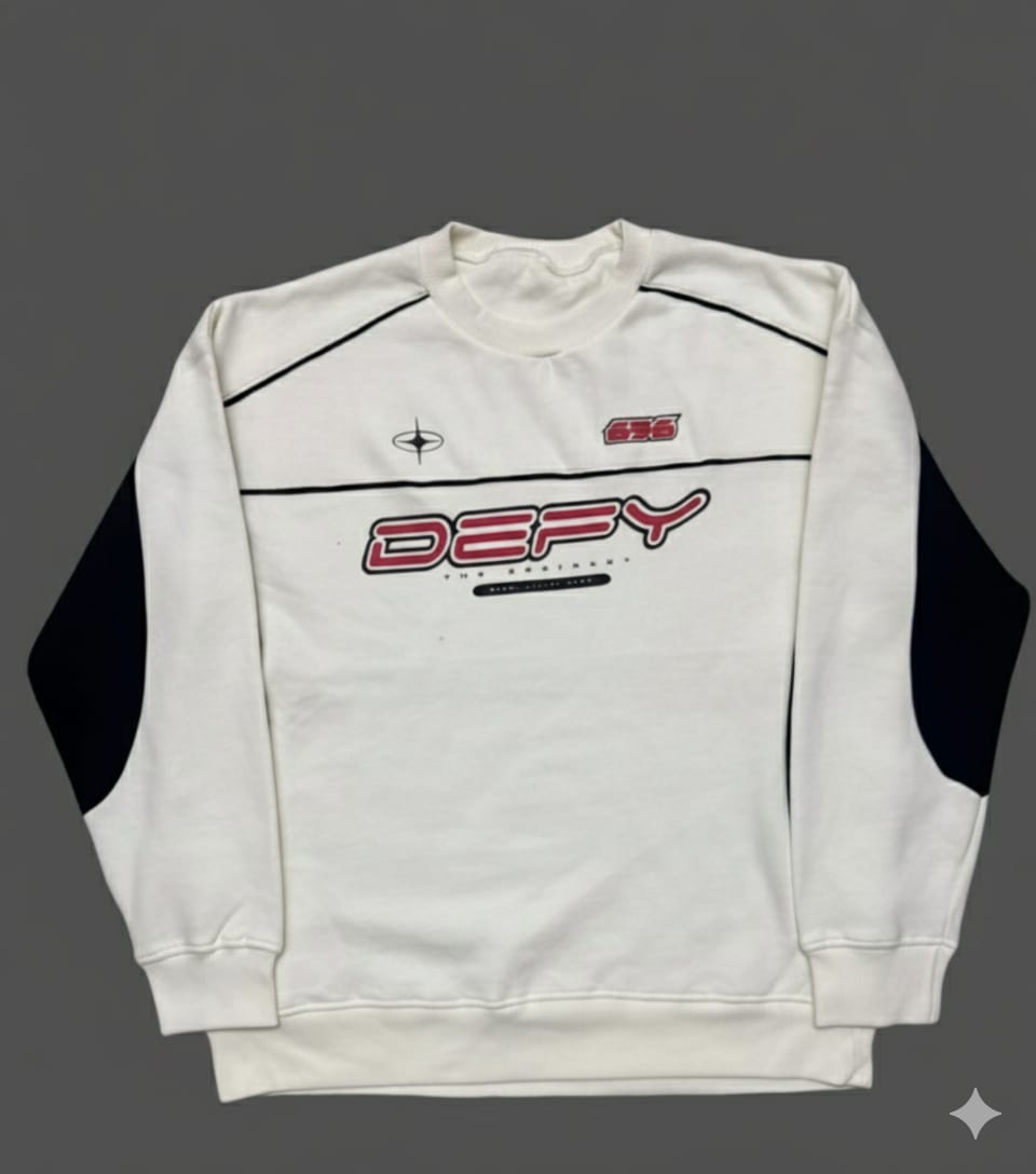 Constructed from a high-quality cotton-poly blend, it delivers lasting softness, structure, and breathability. The athletic-inspired design, complete with DEFY branding across the chest, makes this sweatshirt perfect for casual wear, gym fits, or elevated everyday looks.